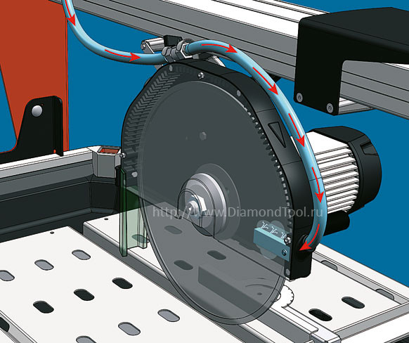 • Система подачи воды в зону реза