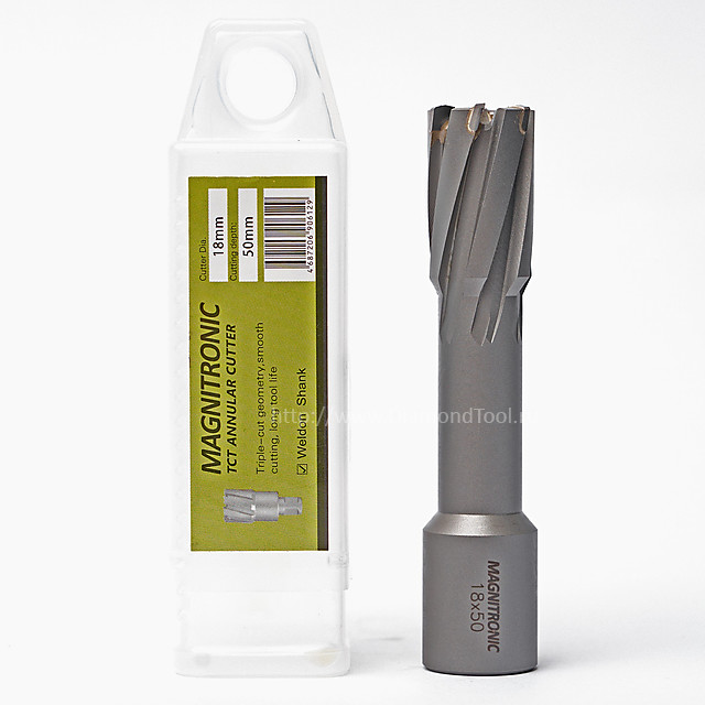 Корончатое сверло с твердосплавными зубьями (TCT) предназначено для высокоскоростного сверления отверстий большого диаметра в самых твердых материалах. Благодаря хвостовику Weldon 19 и твердосплавным напайкам, оно обеспечивает максимальную производительность и долгий срок службы при работе на магнитных сверлильных станках.